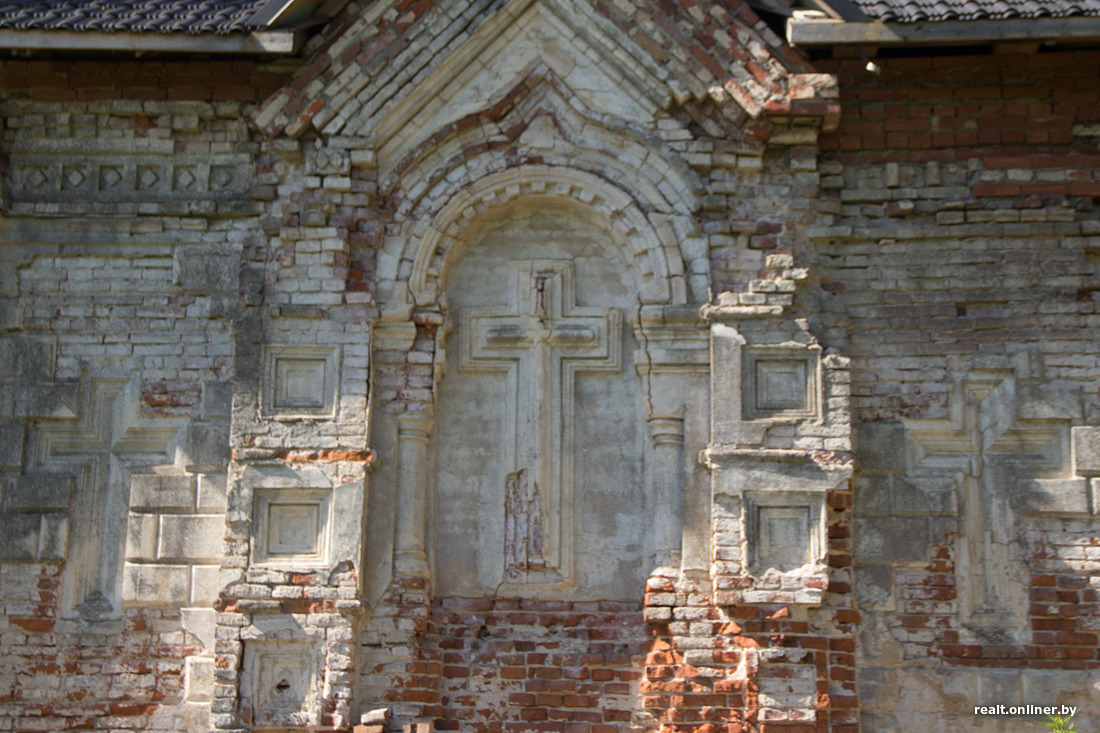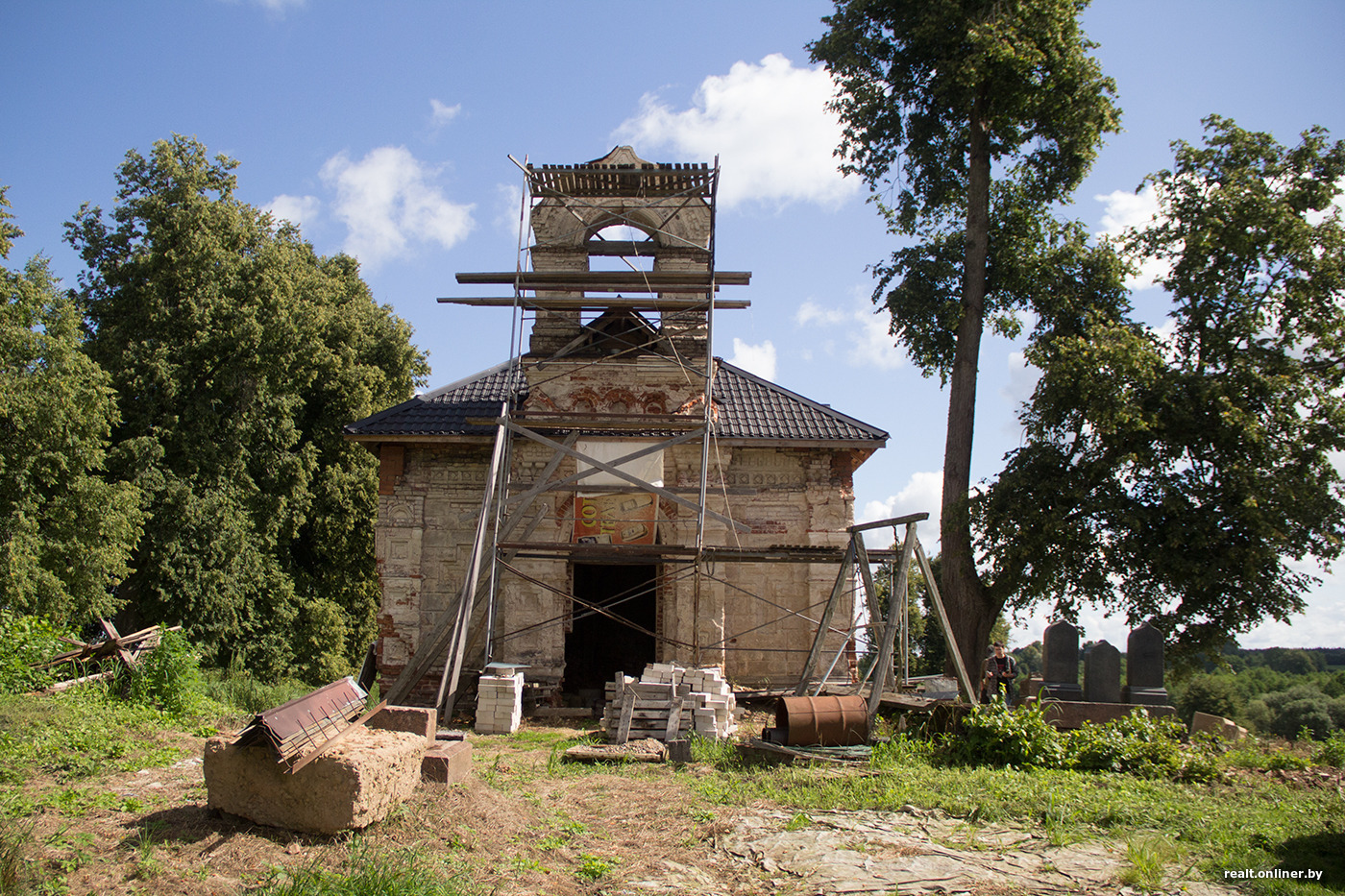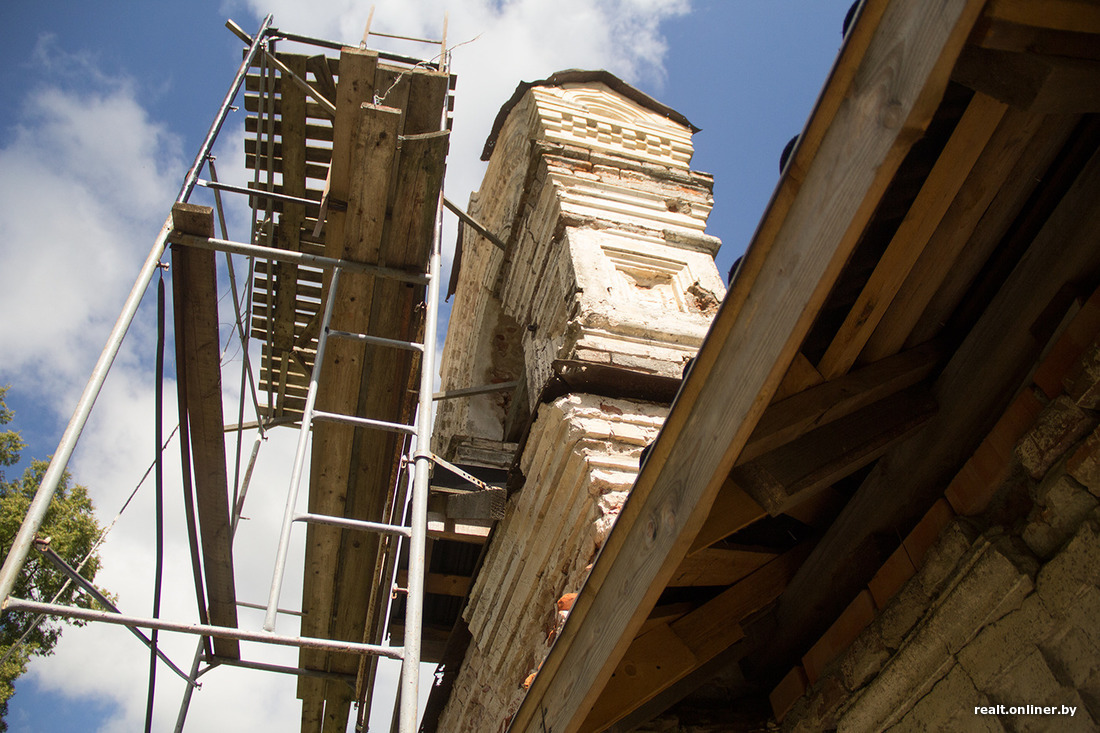 — Тут жа так: адну працу зрабіў — другая чапляецца. Да зімы трэба да канца ўмацаваць сцены і былую званічную арку, абавязкова паставіць шэсць вокнаў і дзверы. Вокны ўжо замовіў, з грашыма на іх дапамаглі людзі: сабралі на дабрачынны рахунак каля 1,5 тысячы рублёў. Гэта будуць звычайныя вокны ПВХ: тут ужо не да гістарычнай дакладнасці, трэба ставіць хоць нешта, каб захаваць будынак. Затым трэба будзе пакласці падлогу і брацца за ўнутранае аздабленне, тынкоўку. А потым не ведаю — можа, і сіл ужо не будзе, мне ж 65 гадоў. Ды і дэкор — гэта ўжо справа вузкіх спецыялістаў.