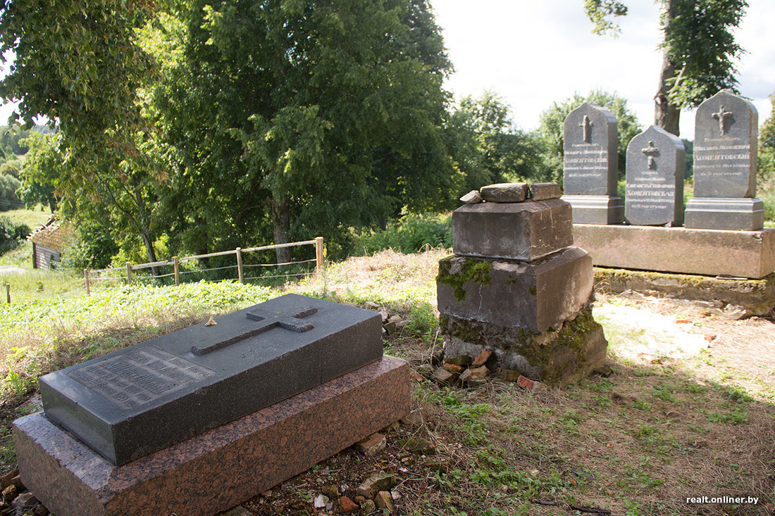 — Помнік жонцы генерала знайшоў выпадкова, калі прастукваў ломам тэрыторыю. Пліта ляжала вунь там, далей, пад яблыняй. А пастамент Паўлу выявіў, калі чысціў завал усярэдзіне капліцы. Пакуль ён ляжыць на зямлі, але з часам і пастаўлю яго.